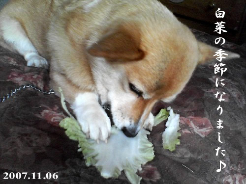 冬野菜の季節到来~\(^▽^)/ 畑の大根&白菜が採れる様になった♪ 白菜の外葉を見せたら、すかさずごはんを食べる場所に移動するマロン。