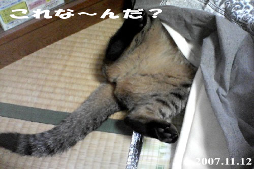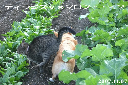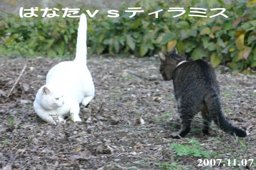 マロンの短い散歩から帰ってくると、ぱなたが出迎え。 ぱなたは何処まで付いてくるだろうと、ぱなたを呼びながら散歩に出てみる。 マロンよりいく分早い歩調で、マロンより10m以上長い距離を歩いた(^^)v 折り返して間もなく、庭から黒い物体が全力疾走してきた(笑) マロンとの散歩と勘違いして一緒に行こうとティラミスが駆け寄ってきたのだ。 が、一緒に居るのがぱなたと判った途端に急ブレーキ。 ・・・ぱなたとの散歩は行く気ないらしい(^^; 一旦、ぱなたと帰り、ドライフードをくれてティラミスの所へ戻る。 前を通り過ぎたら、張り切ってついてきて追い越していく(^^) マロンより40m位長く歩いたかな? この結果からすると、散歩好き№1はティラミス? そして、散歩嫌い№1はマロン(爆) 我が家では犬より猫の方が散歩が好きらしい。。。
